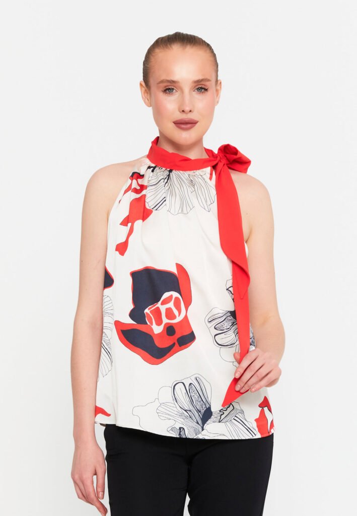 Oberteil: Kurze Bluse mit schwarzer Satinschleife, runder Ausschnitt