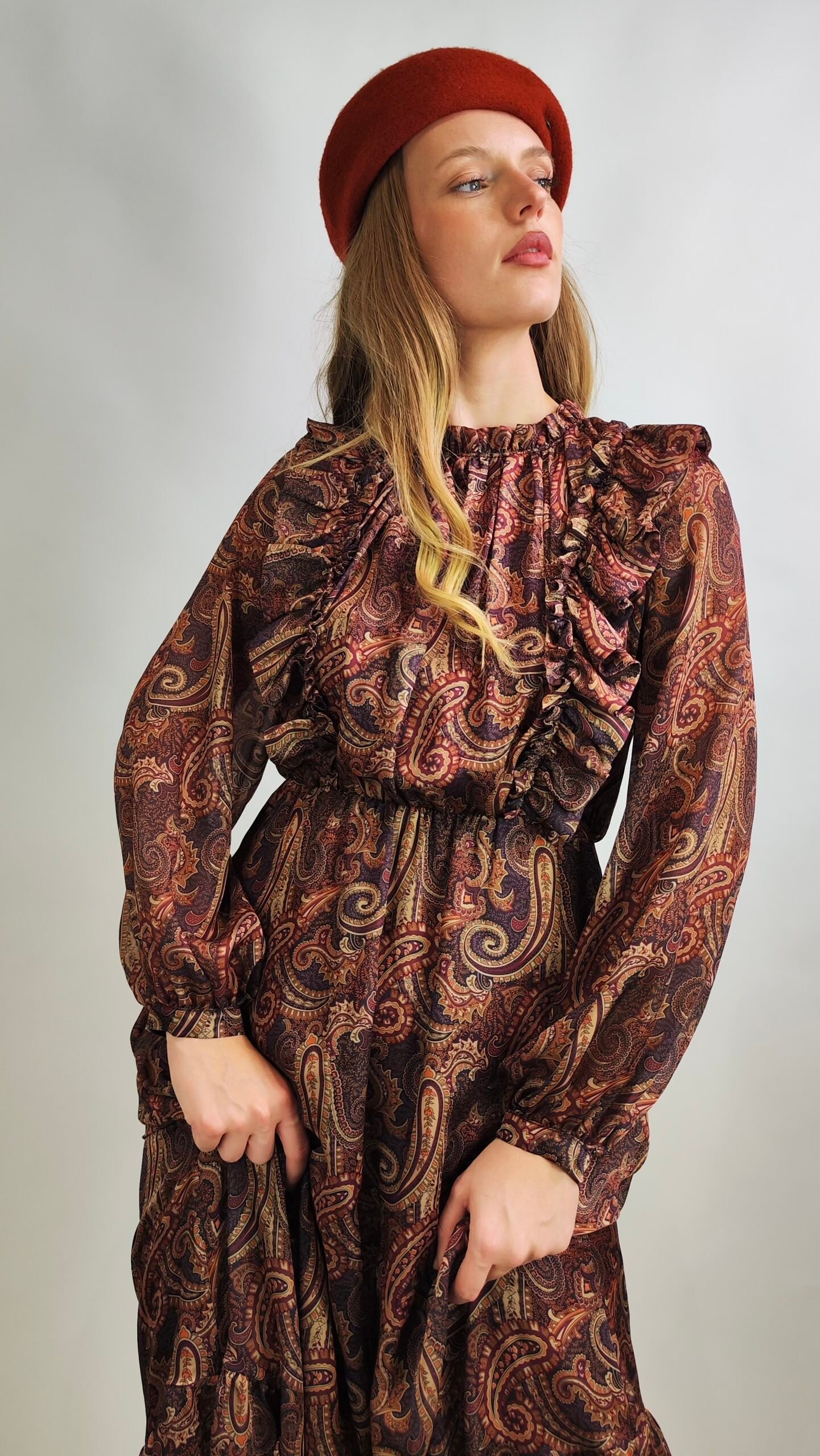 Startseite » Shop » Boho Paisley Midikleid – Bordeaux Eleganz