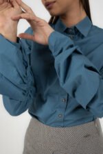 Elegante Damenbluse in Petrolblau mit femininem Schnitt und modischen Volant-Ärmeln. Hochwertiges Material, perfekt für Business und Alltag. Zeitlos, stilvoll und vielseitig kombinierbar.