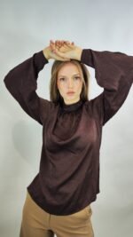 Startseite » Shop » Elegante Bluse in Dunkelbraun mit Struktur-Effekt