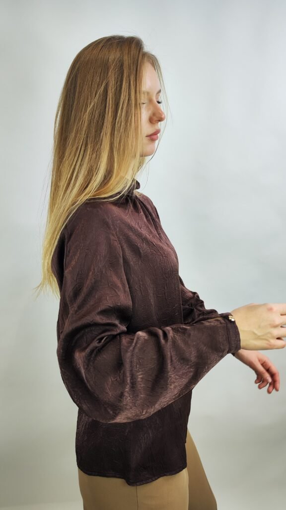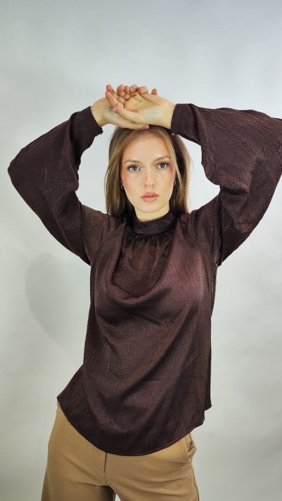 Elegante Bluse in Dunkelbraun mit Struktur-Effekt