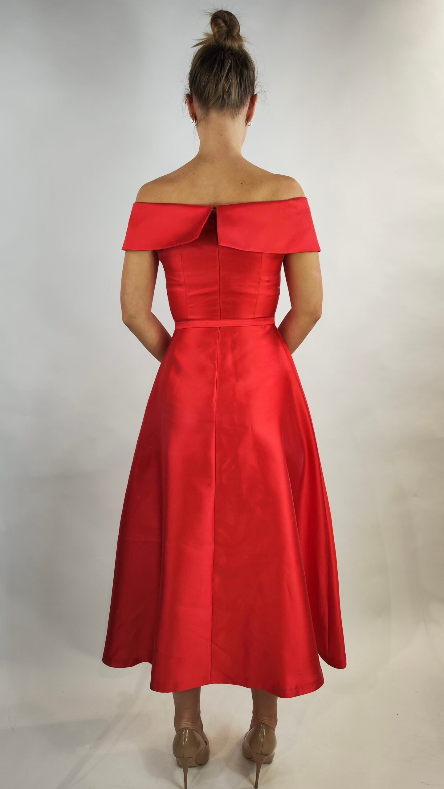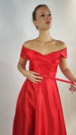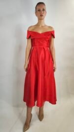 Startseite » Shop » Elegantes Off-Shoulder Midikleid mit Gürtel – Rot