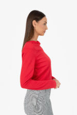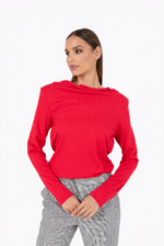 Startseite » Shop » Elegantes rotes Damenblusenshirt mit drapiertem Ausschnitt