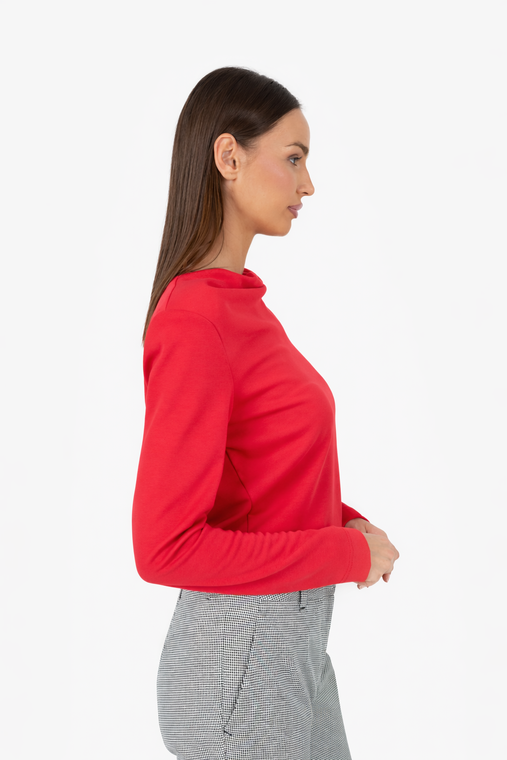 Elegantes rotes Damenblusenshirt mit drapiertem Ausschnitt