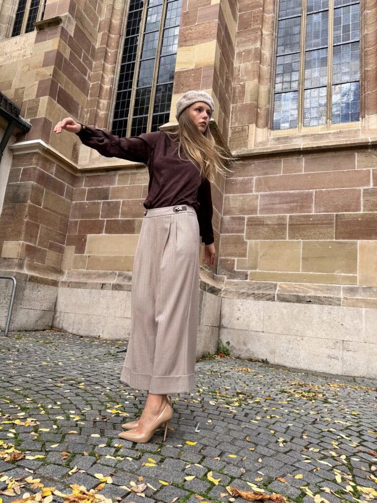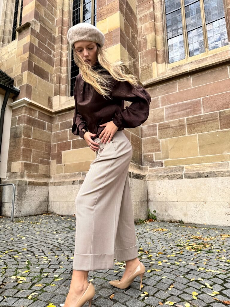 Elegante Culotte-Hose in Beige mit hohem Bund