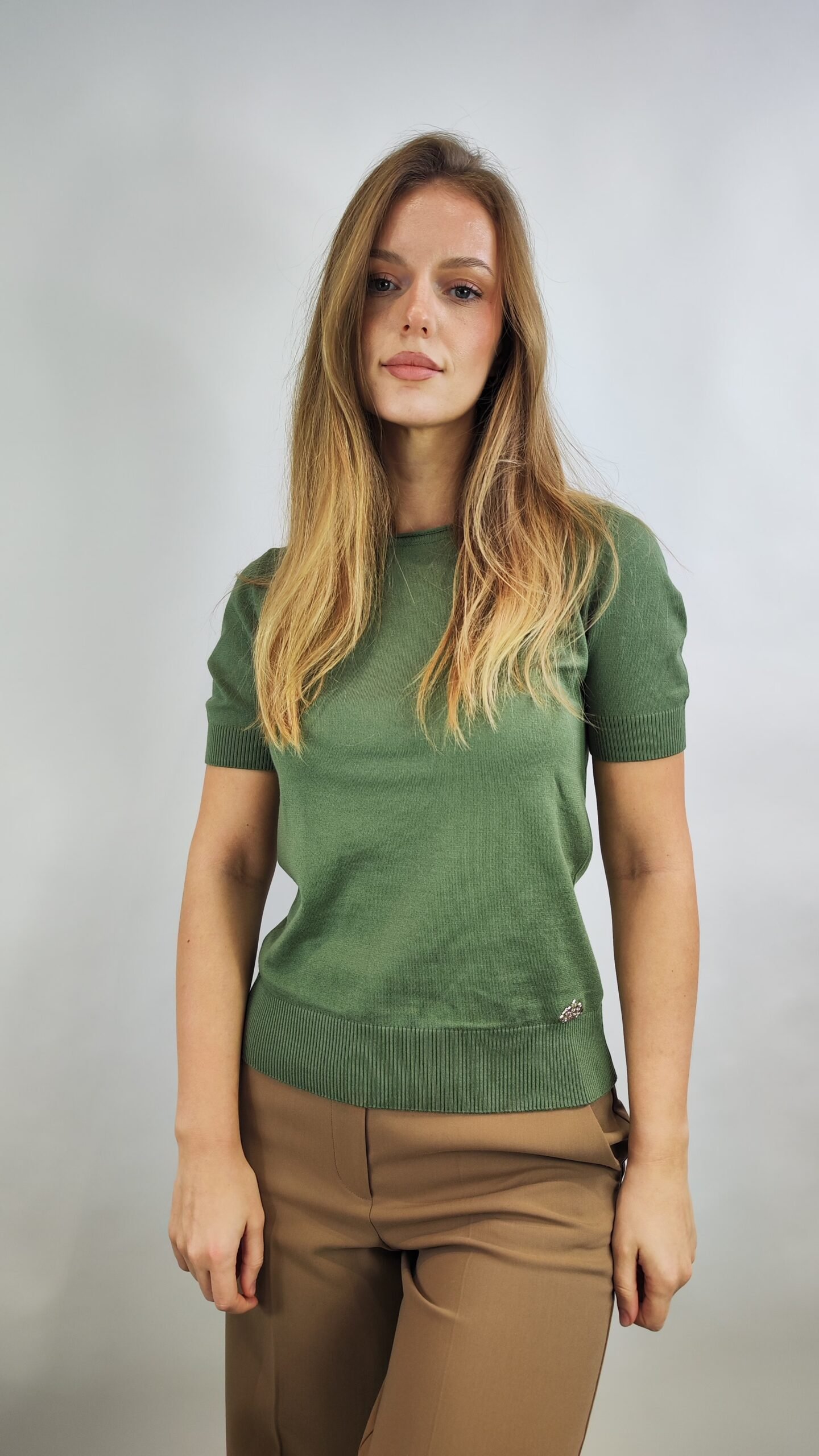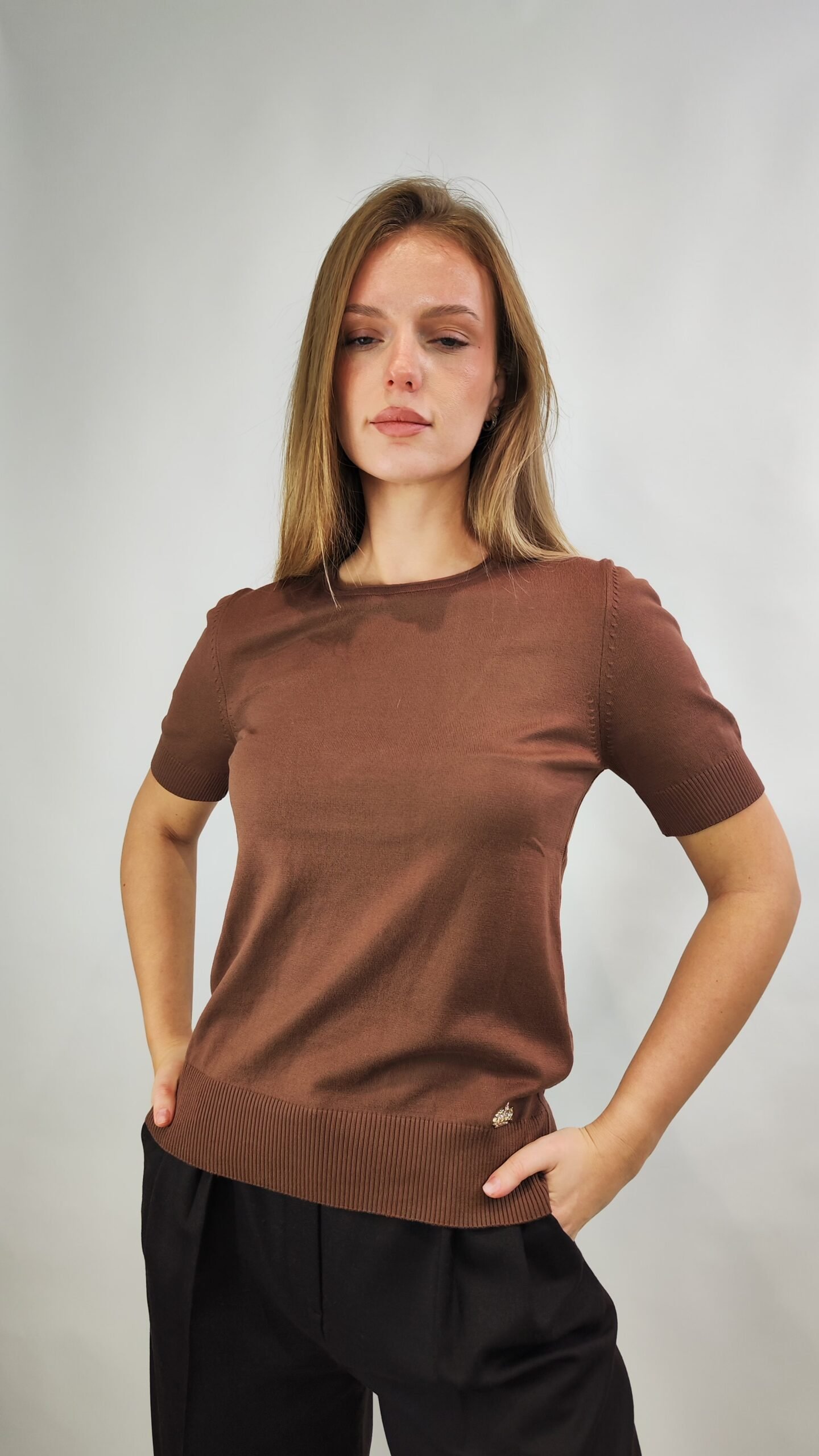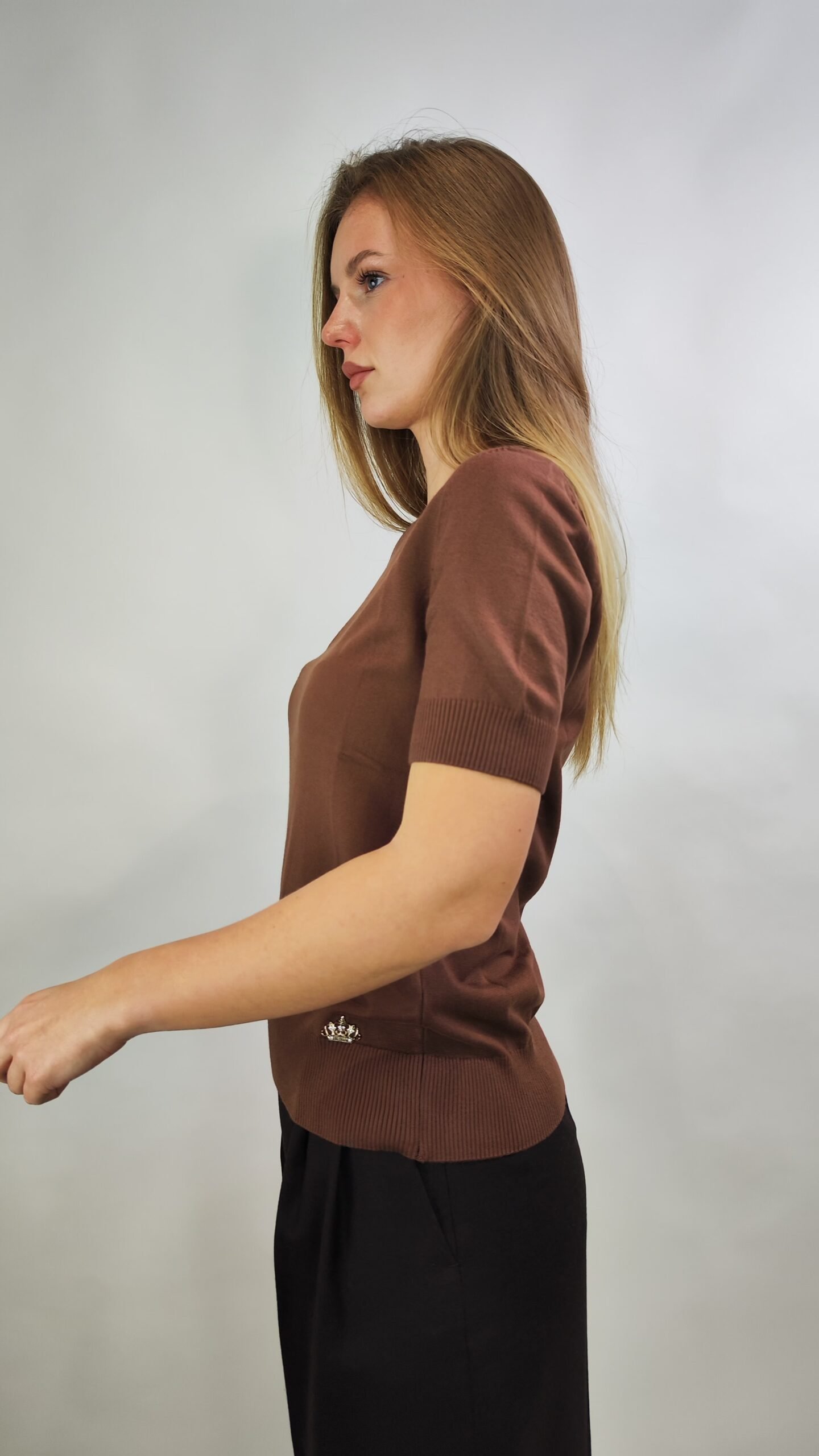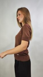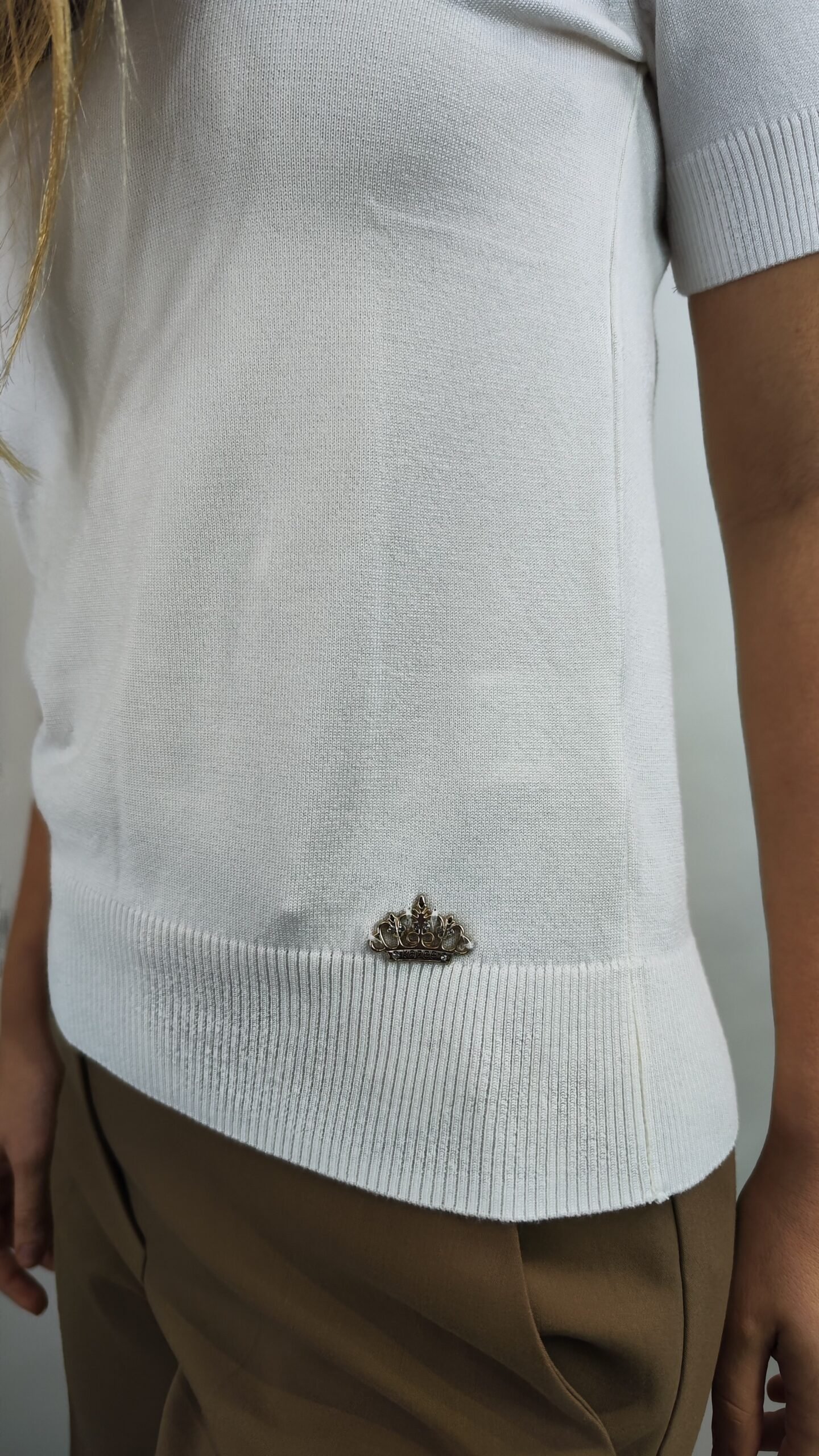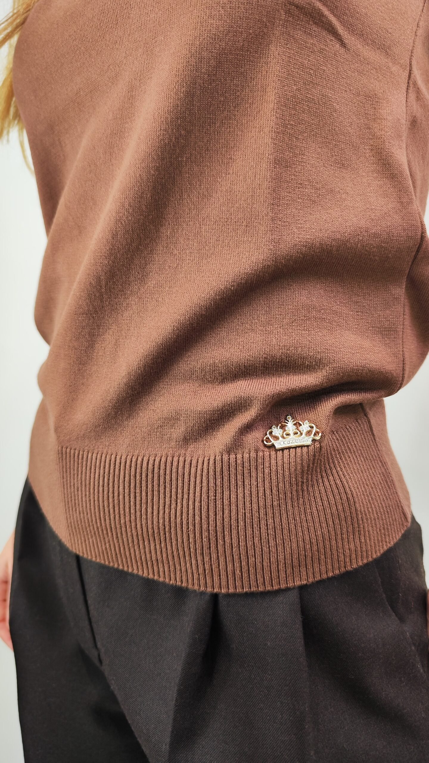 Startseite » Shop » Feinstrick-Pullover mit goldfarbenem Logo-Detail