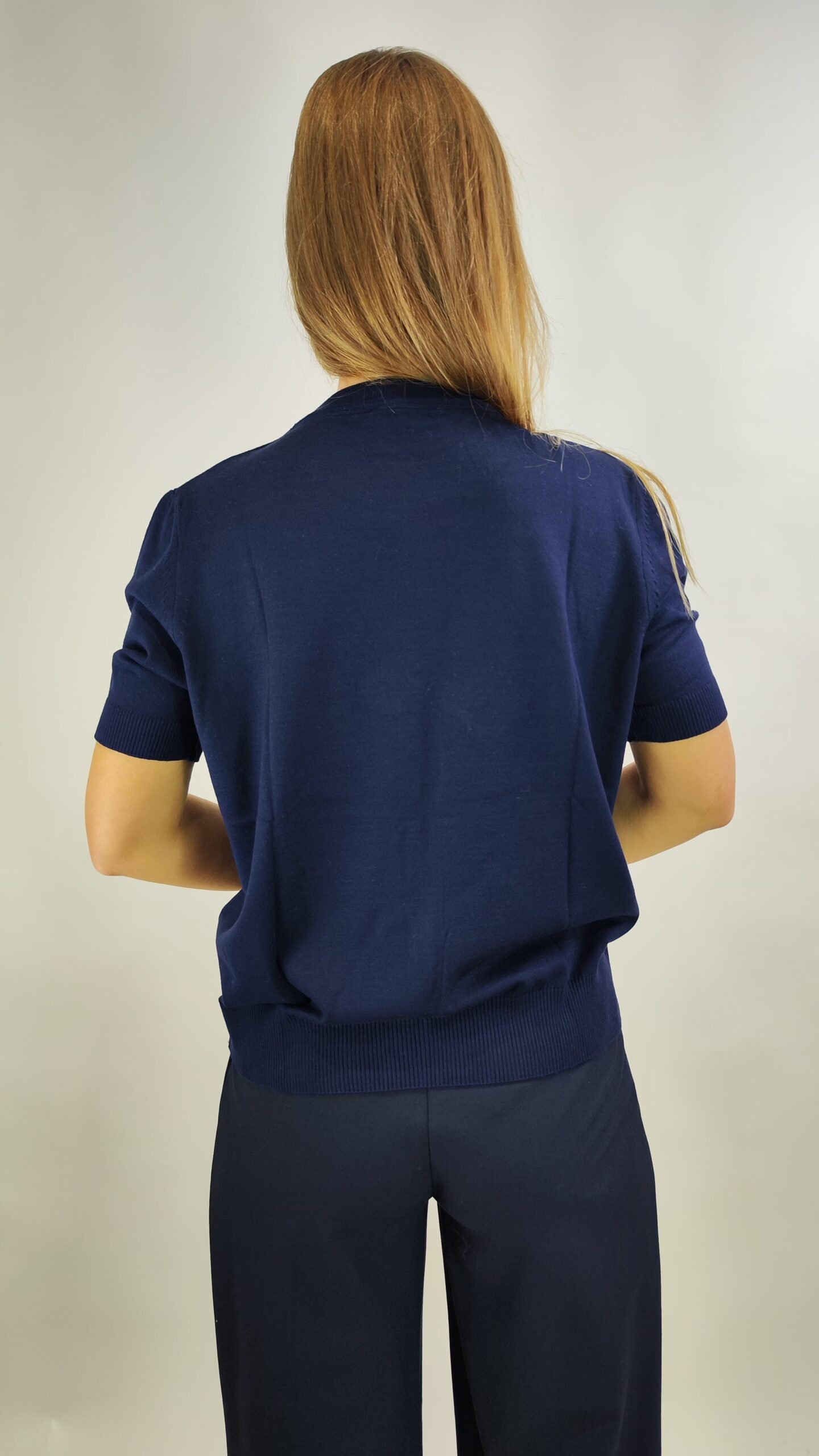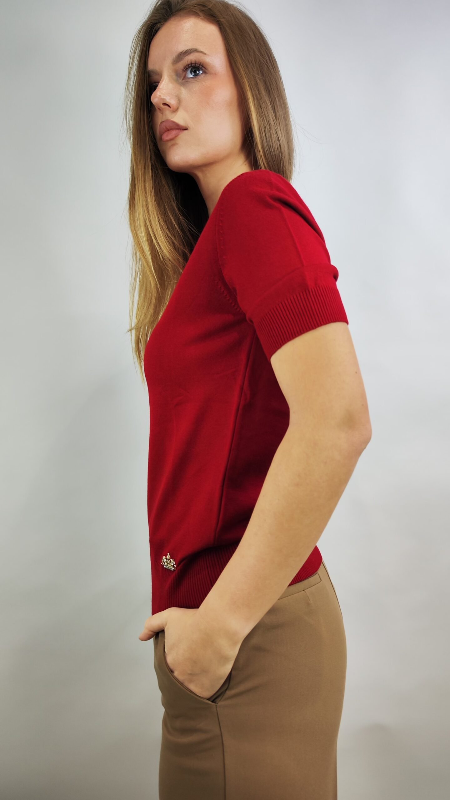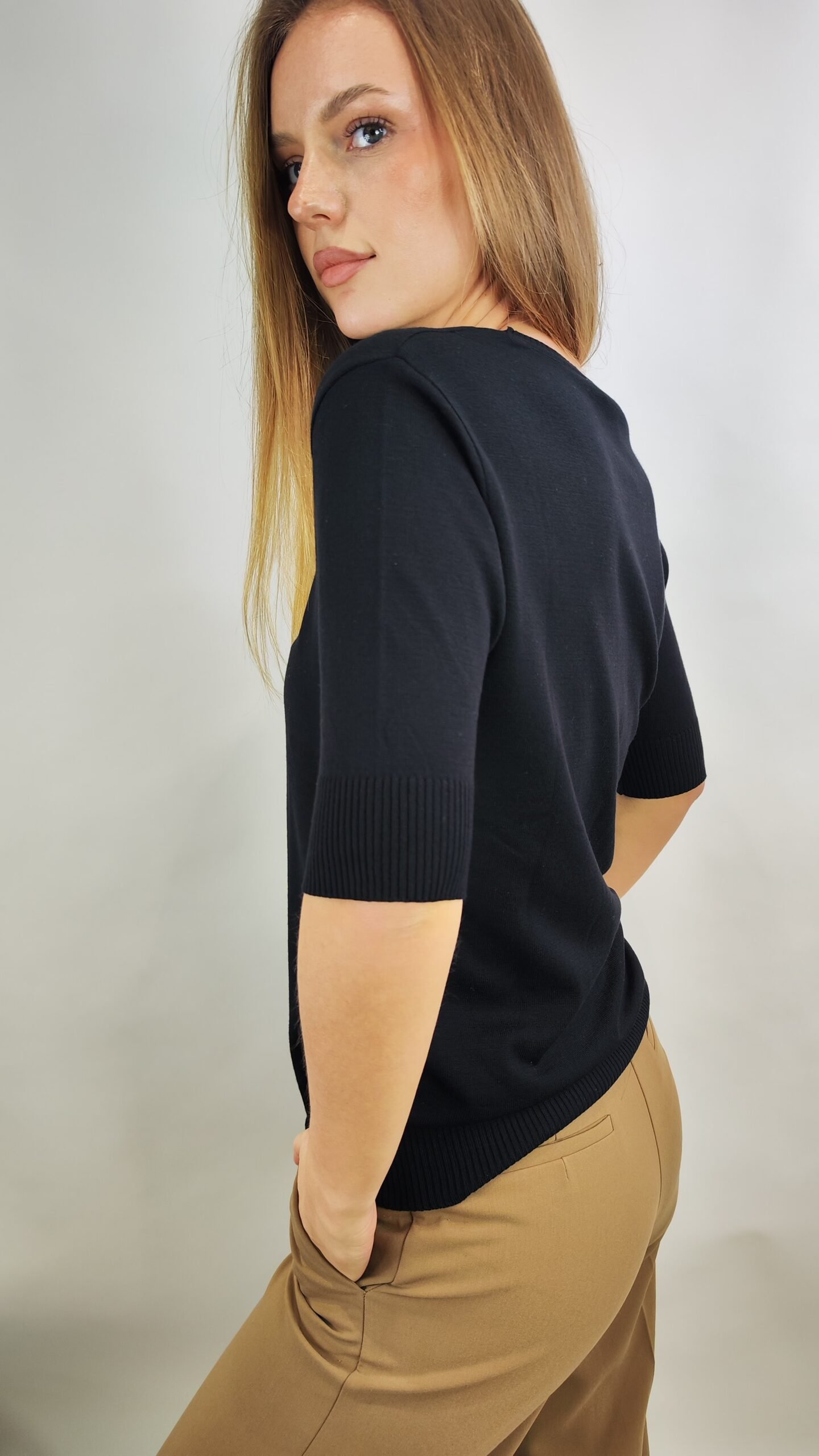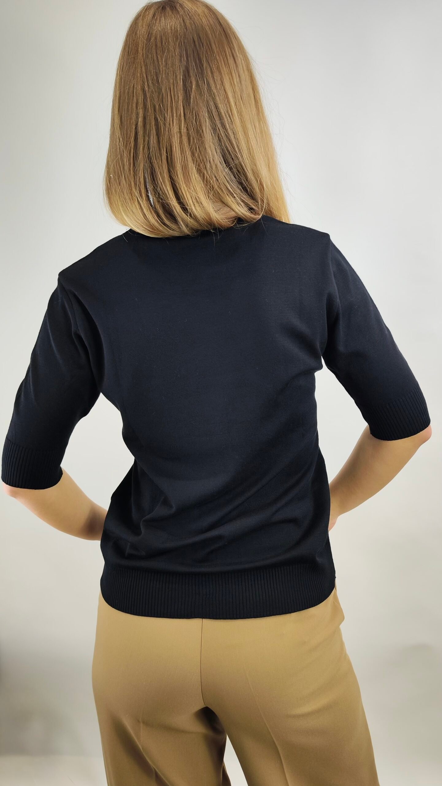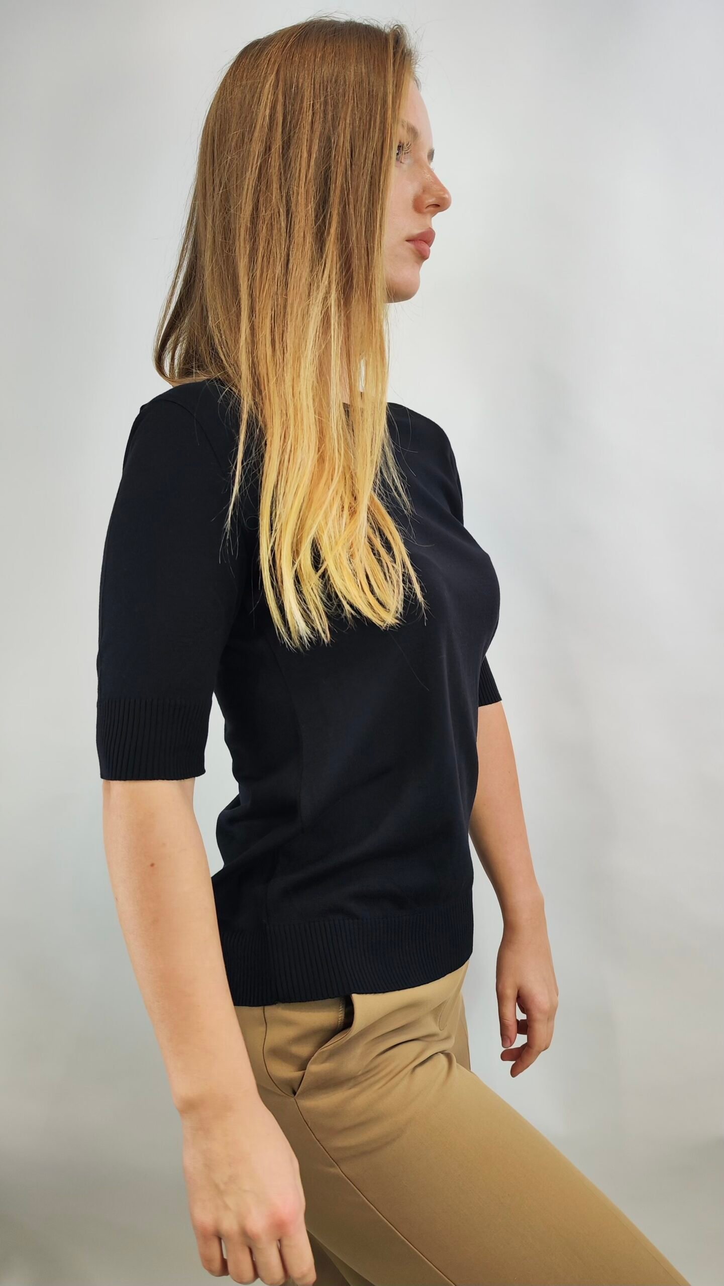 Startseite » Shop » Feinstrick-Pullover mit goldfarbenem Logo-Detail