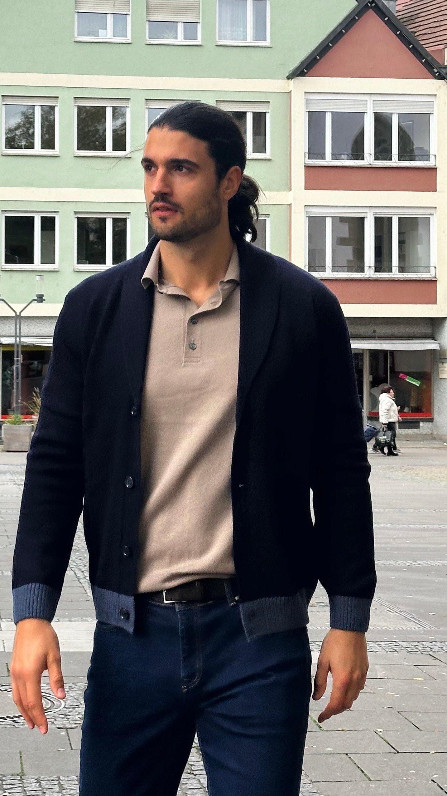Startseite » Shop » Fiumelli Herren Schalkragen-Strickjacke – Navy