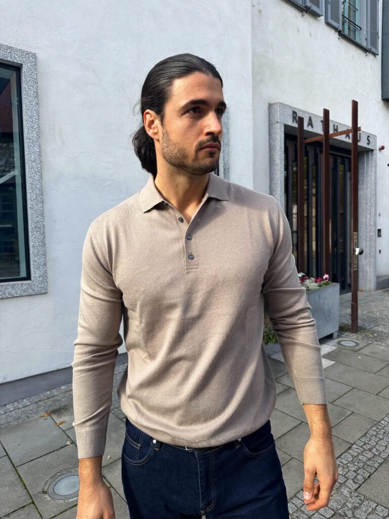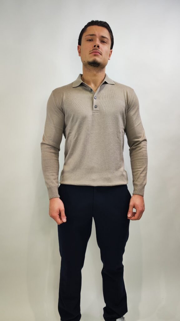 Fiumelli Herren Langarm-Polo – Wolle/Baumwolle