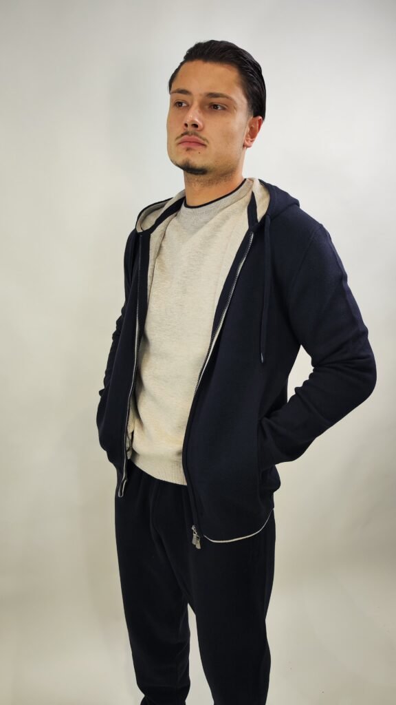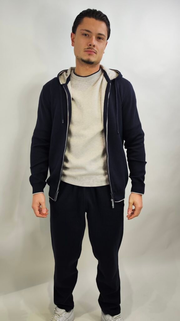 Fiumelli Herren-Set – Zip Hoodie, Pullover & Hose (Navy / Grau)