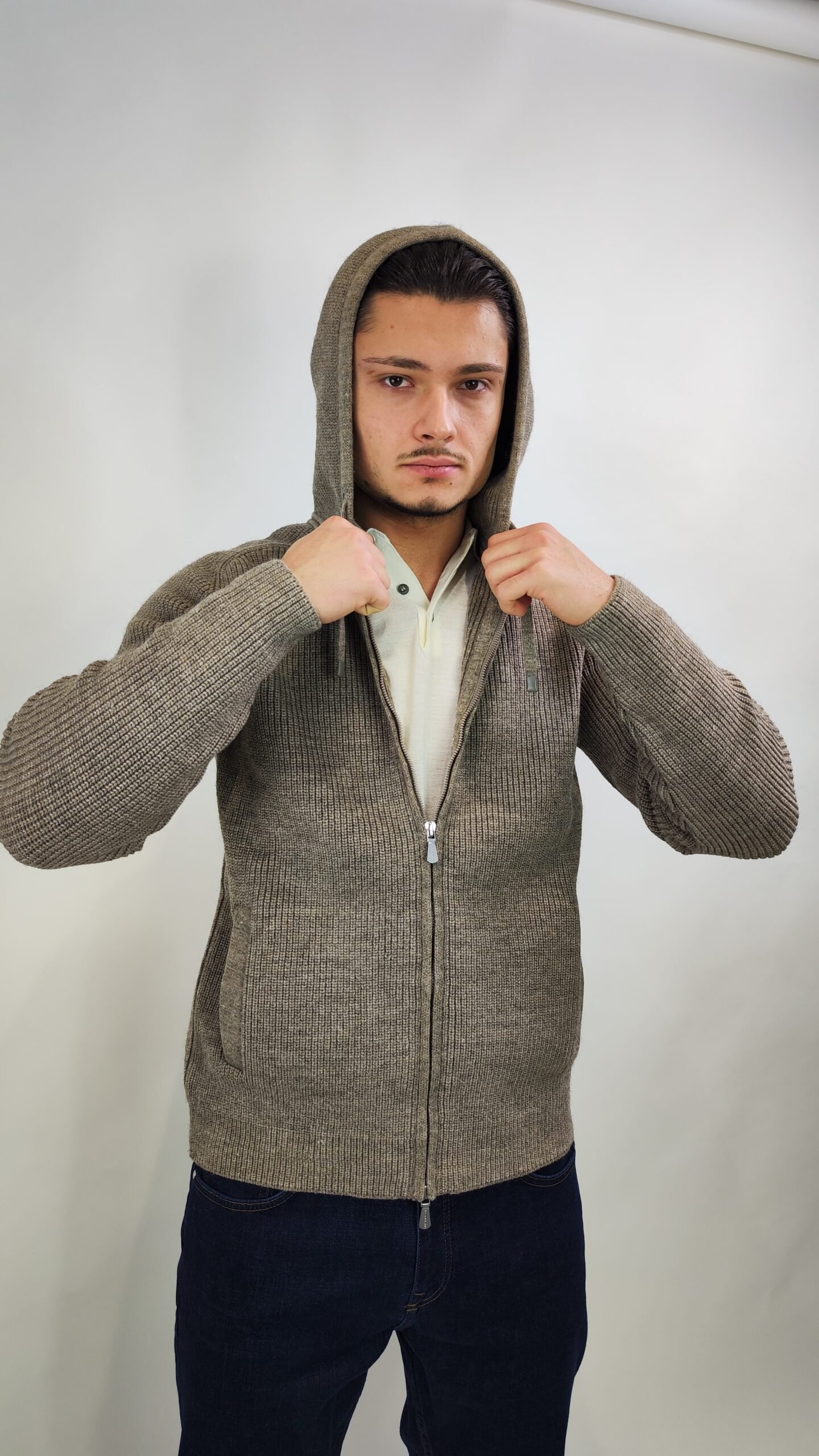 Startseite » Shop » Fiumelli Herren Strickjacke mit Kapuze – Beige