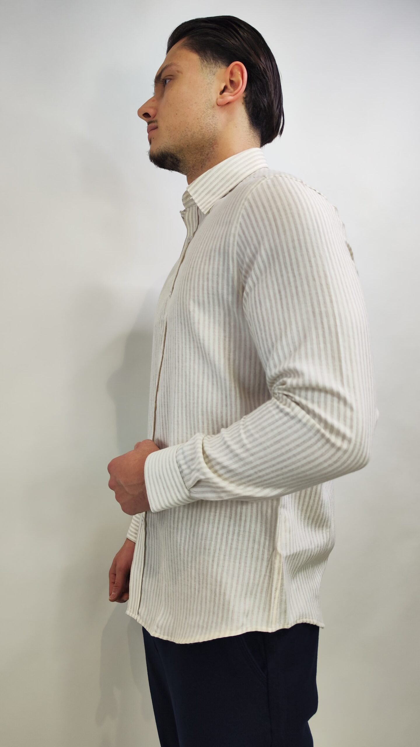 Startseite » Shop » Fiumelli Herrenhemd – Gestreift, Beige (Langarm)