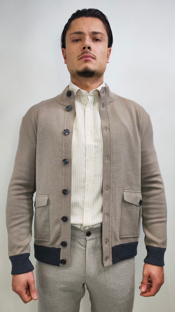 Herren Strickjacke mit Stehkragen – Beige / Taupe (FIUMELLI)