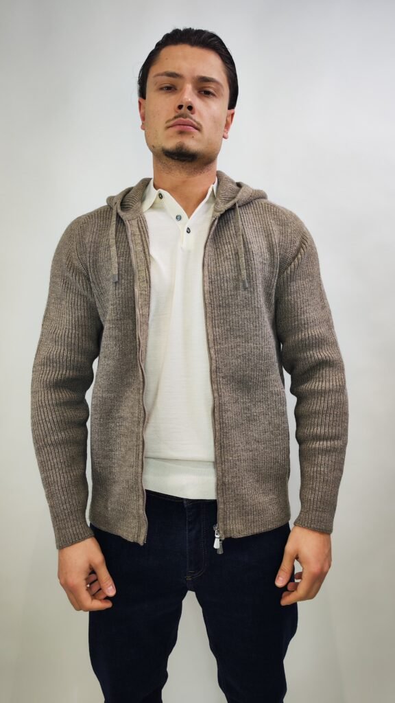 Fiumelli Herren Strickjacke mit Kapuze – Beige