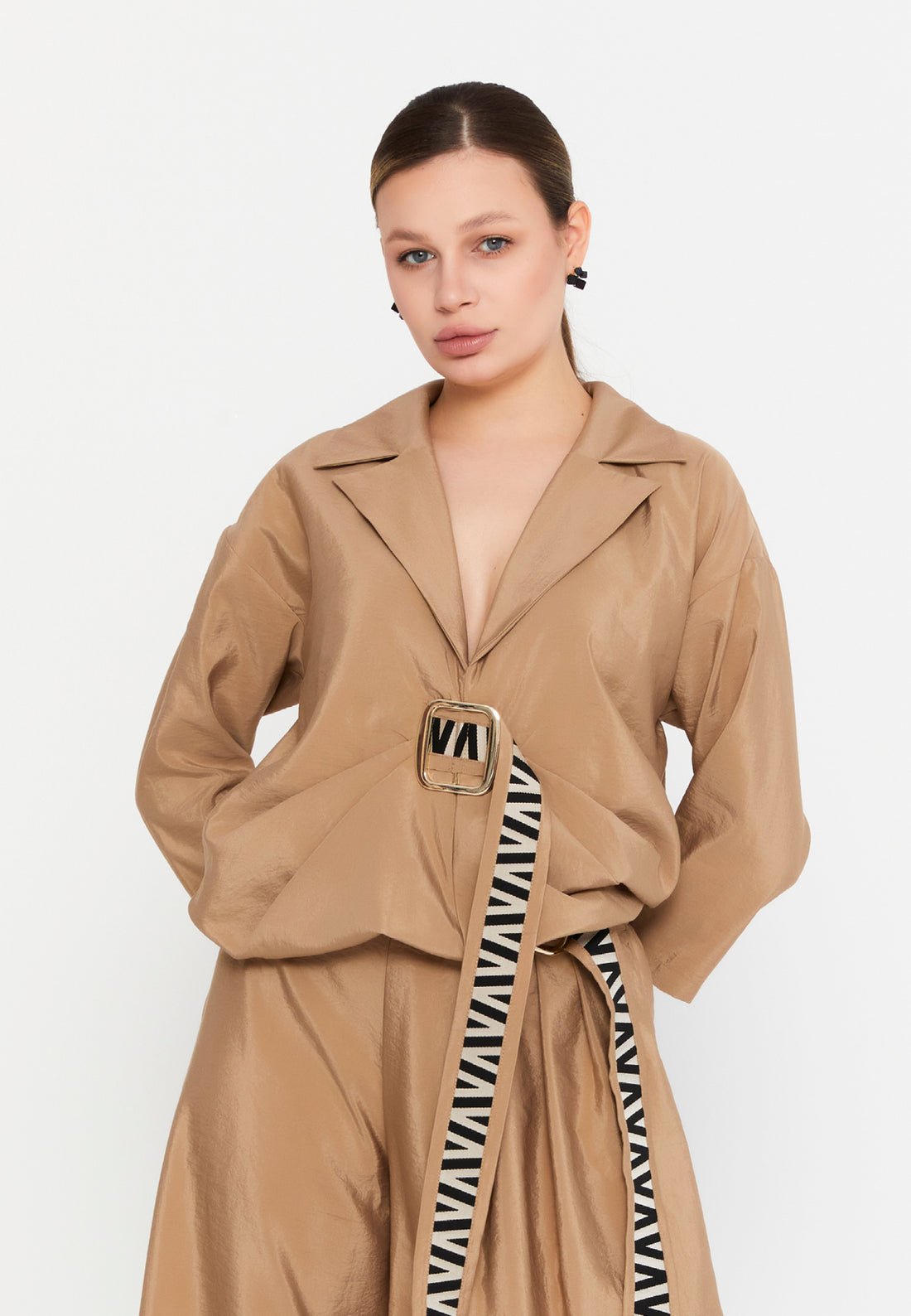 Holen Sie sich die Wärme natürlicher Töne und modernes Design in Ihre Garderobe mit unserem Sahara Chic Set. Dieses Set in erdigem Beige ist ideal für Frauen, die Eleganz, Komfort und dezente Modeakzente lieben.