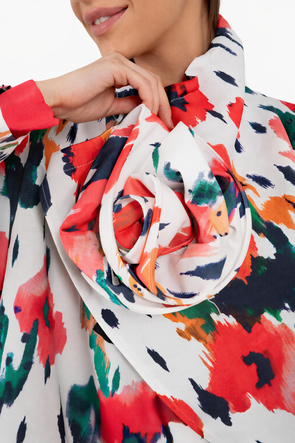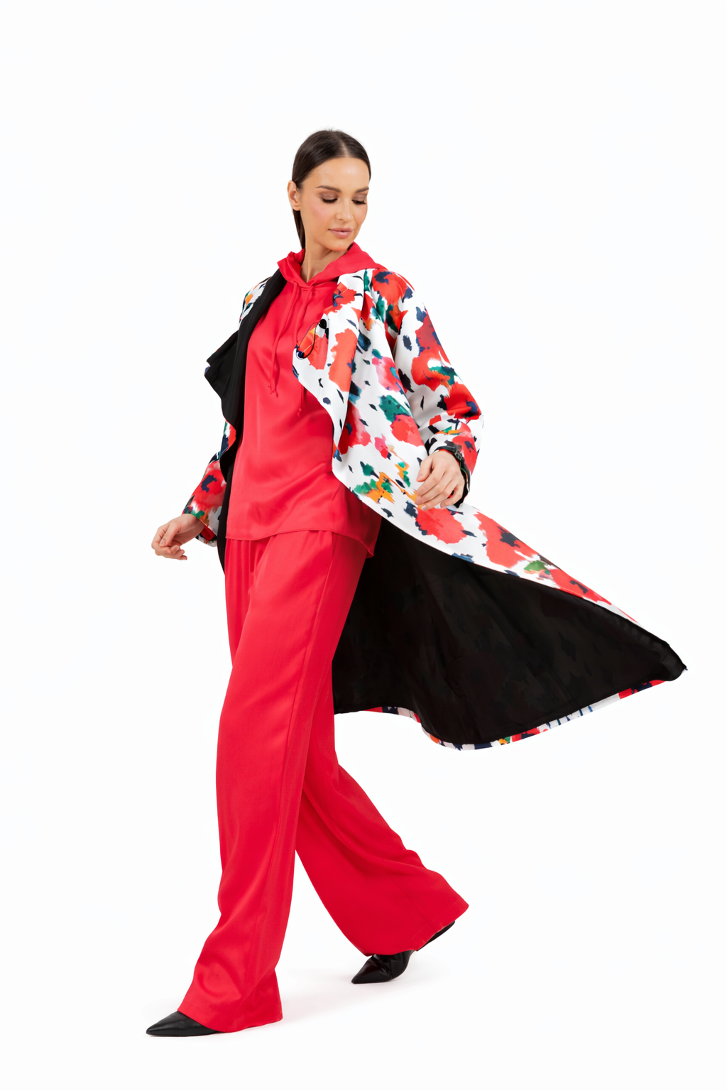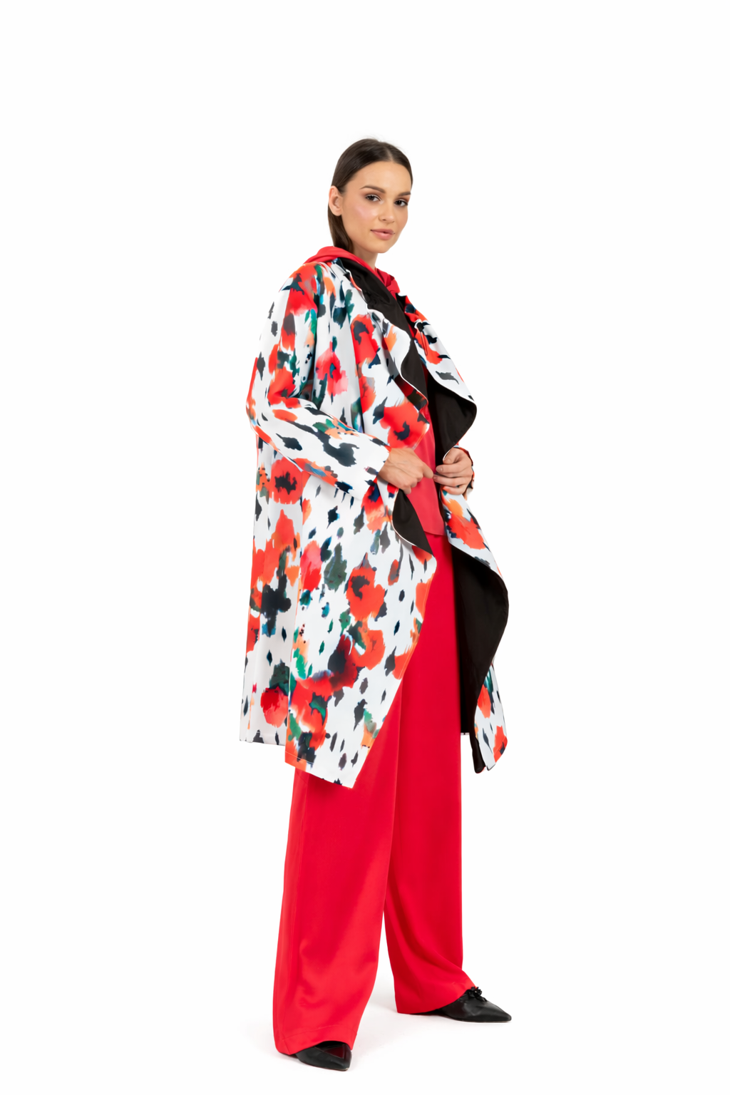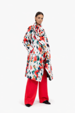 Exklusiver Mantel mit künstlerischem Print, der jedem Outfit eine starke und elegante Ausstrahlung verleiht. Perfekt kombinierbar mit monochromen Looks, eleganten Hosen oder einem schwarzen Kleid, ergänzt durch dezenten Schmuck und neutrale Schuhe.